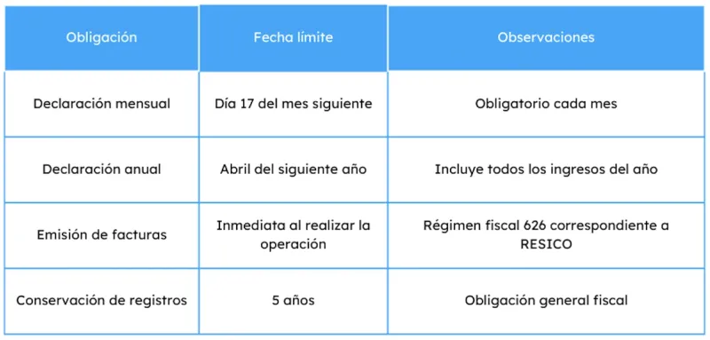 Obligaciones fiscales en RESICO