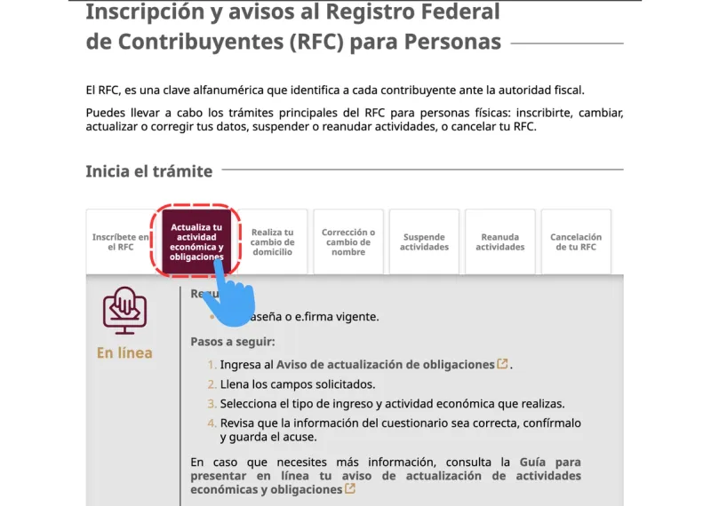 3. Ve a la sección: Actualiza tu actividad económica y obligaciones